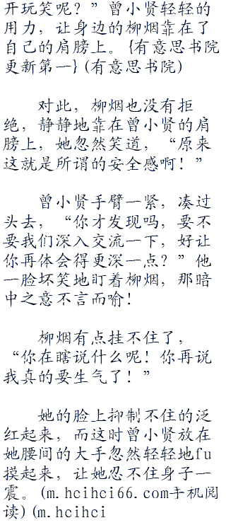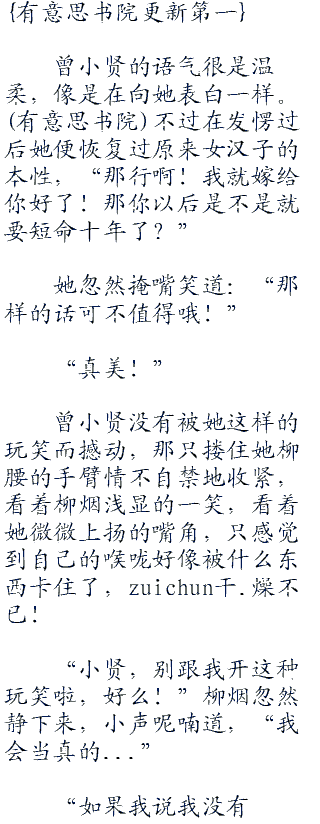 “小贤,别跟我开这种玩笑啦,好么!”柳烟忽然静下来,小声呢喃道,“我会当真的...”