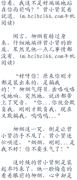 闻言,柳烟有转过身来,仔细地端详曾小贤的脸庞,果然见他一点儿事情都没有。