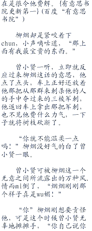 曾小贤可被柳烟这一个无意之间所流露出的万种风.情而mi倒了,“烟烟刚刚那个样子真是wu媚!”