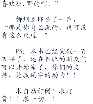 PS:本书已经突破一百万字了,还在养肥的朋友们可以开始宰了,你们的支持,是我码字的动力!!