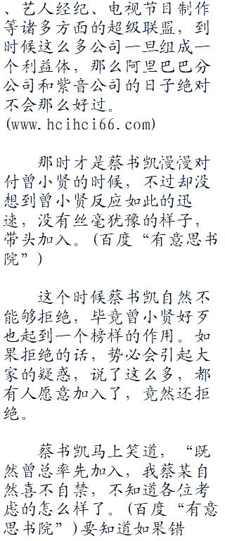 这会成为横跨影视、广告、唱片、艺人经纪、电视节目制作等诸多方面的超级联盟,到时候这么多公司一旦组成一个利益体,那么阿里巴巴分公司和紫音公司的日子绝对不会那么好过。