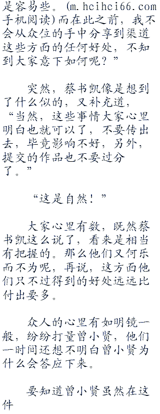 要知道曾小贤虽然在这件事情上面享有到一些好处,不过也会付出不少,因为曾小贤和蔡书凯二人之间的敌对关系,也能知道蔡书凯绝对不会让曾小贤就这么轻易地加入的。