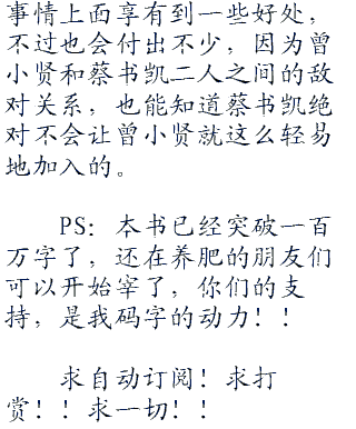 PS:本书已经突破一百万字了,还在养肥的朋友们可以开始宰了,你们的支持,是我码字的动力!!