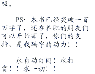 PS:本书已经突破一百万字了,还在养肥的朋友们可以开始宰了,你们的支持,是我码字的动力!!