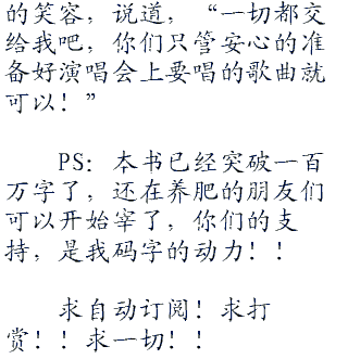 PS:本书已经突破一百万字了,还在养肥的朋友们可以开始宰了,你们的支持,是我码字的动力!!