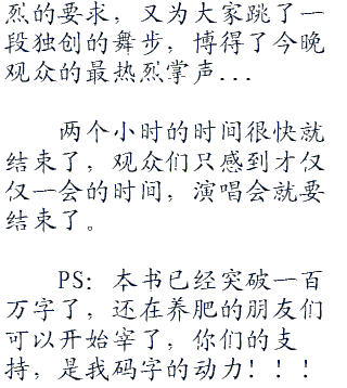 两个小时的时间很快就结束了,观众们只感到才仅仅一会的时间,演唱会就要结束了。