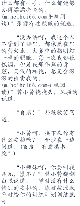 “那就好。”朴仁静略作无奈的说道,“一开始我看到训练计划的时候,差点没被吓到了,真怕自己坚持不下来。”说道后面,却有些习以为常的神色。