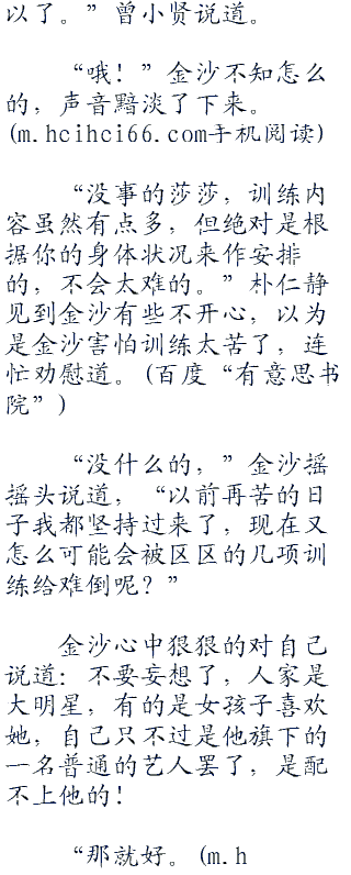 曾小贤见金沙还是有些闷闷不乐的,还当她是觉得自己没有用心为她打算。