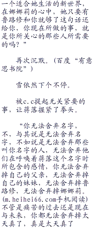 不等蒋落回答,她就继续打断道:“明明可以换一个名字的吧。换一个名字会更安全的吧。但是你,还是保持着这个姓氏,保持着这个名字,完全沉浸在过去中,没有与过去彻底的了断。”