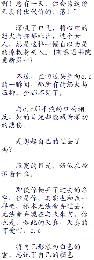 但是,她不需要别人的怜悯,不需要别人的可怜,因为她,可是c.c啊。