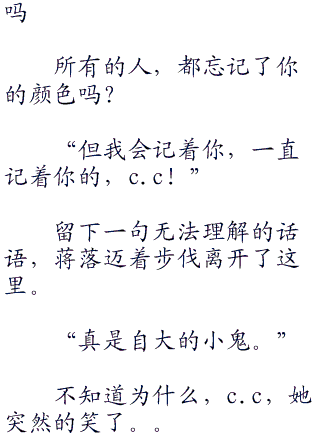 好笑的耸了耸肩,蒋落站到了c.c的身边与她一起眺望远方。