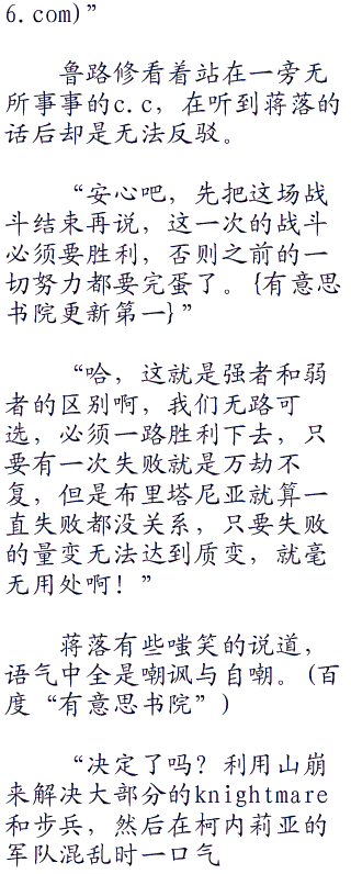 鲁路修继续用着经过机器改变过的低沉声线说道。