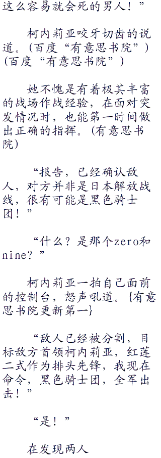 挥舞着手中的长枪,轻松的刺穿日本解放战线派出的knightre,柯内莉亚冷哼一声,满脸的不屑。