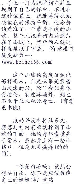 不过天不遂人愿,当柯内莉亚跑出这片森林时,前方却是一个陡峭的山坡,山坡虽然不高,但是只要一个不小心掉下去,恐怕也会要了自己的命。