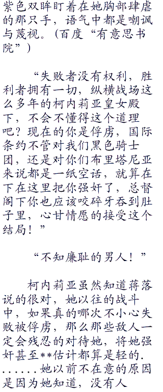 不过,就算两个人,或者说蒋落真的在这里对柯内莉亚做了什么,c.c也不会嘲讽与鄙视,甚至可以当做没有看到,数百年的人生让c.c早已理解了人性,而对性的渴望,正是一个正常男人所必须拥有的东西。