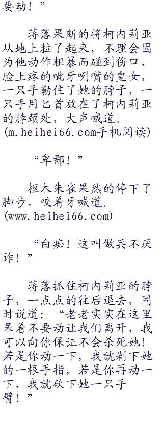 柯内莉亚的紫色双眸闪过一丝哀伤,被蒋落抓住的胳膊握紧了拳头,最后,她还是颓然的叹了口气。