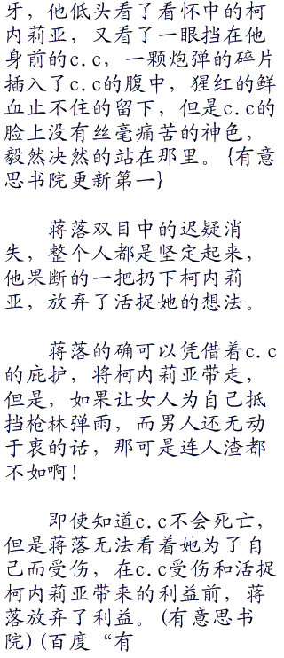 蒋落暗自一惊,他的确没有想到柯内莉亚竟然会这么选择。