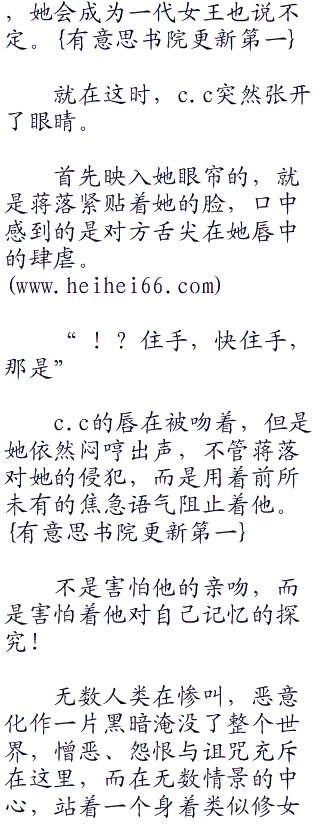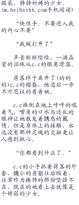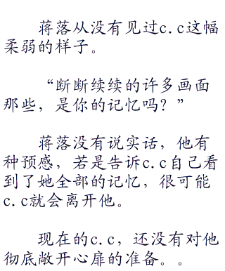 不是无法忍受心中的欲丶望而去占c.c的便宜,而是蒋落的内心有一个声音在告诉他,他必须要这样去做,只有这样,才能得到c.c的秘密。