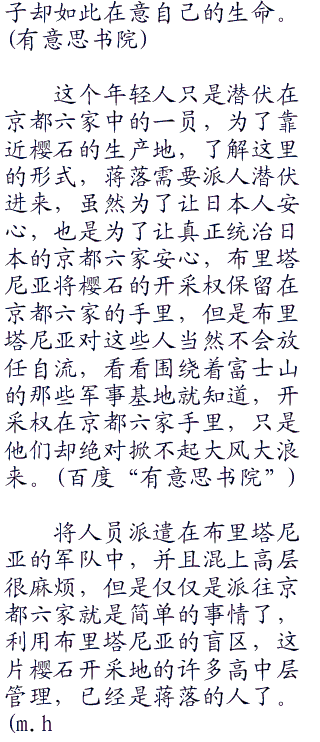 “匹夫无罪怀璧其罪,区区一个小国却拥有着决定世界命脉的资源,没有能守护它的与之相匹配的实力,最后的结局也不外如是了。哼,孤让你们来这里,不也是为了这些樱石吗。”