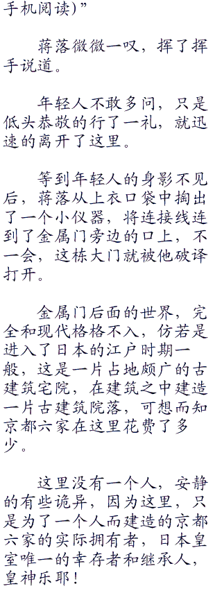 这里是京都六家的大本营,亦是十一区布里塔尼亚军队最是重视的地方,没有鲁路修那种命令他人geass的蒋落,就连c.c都不知道他是怎么进去的。
