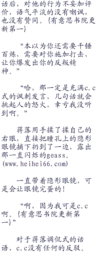温柔可人的c.c也好,冷酷无情的c.c也罢,她都如此的吸引着蒋落的注意。