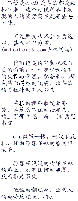 绿色的发梢触碰到蒋落的脸,几许沐浴后的清香从c.c的身体上,头发上钻入他的鼻腔。