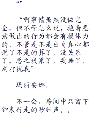 “你已经无路可退了,你已经没有产生动摇或者罢手的权利了!背好自己的血债,把产生的憎恨踢走,要是做不到的话,就这样在这个屋子中哭鼻子吧,可不要让我失望啊。”