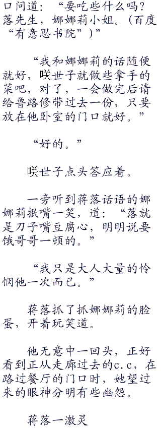 鲁路修一言不发,他低着头从蒋落的身边走过。