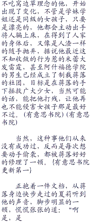 最近的蒋落不知发了什么疯,仿佛是觉得自己可能在这里呆不久般,以前总是坚定的执行兔子