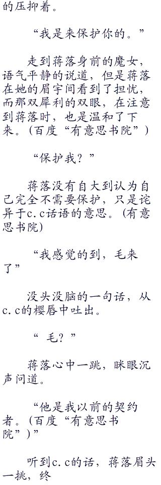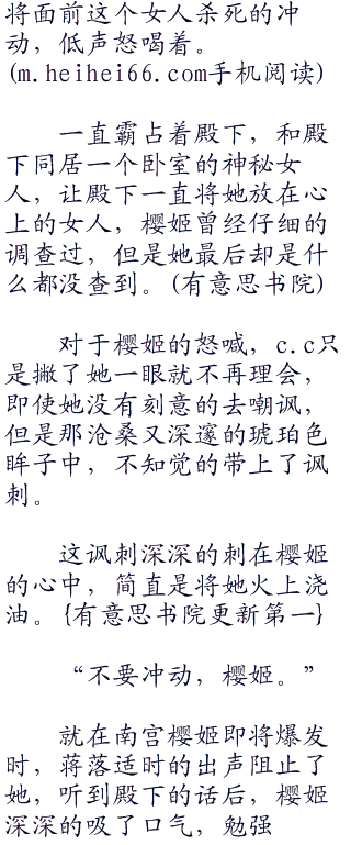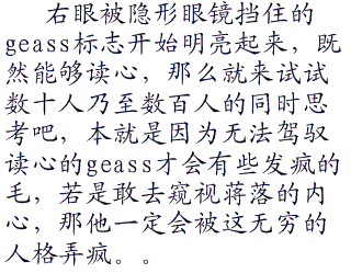 “枢木朱雀确实是个让人心烦的家伙,不过现在就杀了他的话,有些事情就不好办了哼,鲁鲁不是和他关系好嘛,当最后知道一直在阻止着自己,让自己功败垂成的人就是枢木朱雀时,不知道鲁鲁你是什么想法。要不就让朱雀彻底的臣服,要本就由你亲手来杀死他吧,鲁路修!”