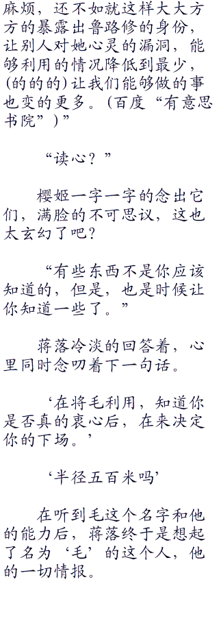 相比蒋落的温和,南宫樱姬的脸色却是很不好看,她强忍着