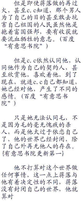 毛微笑的说出这些话,没有受到任何良心的谴责,因为他看破了人心的丑恶,所以才会从心底轻视和嘲笑这个人类的世界。