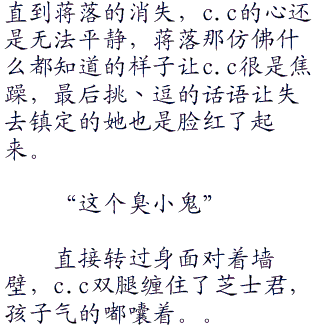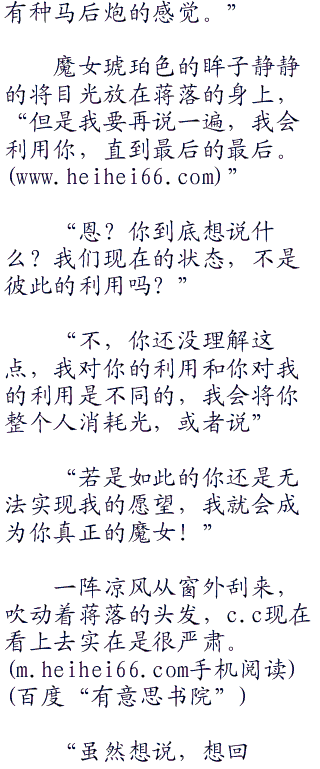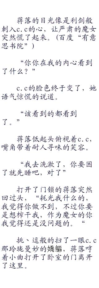 蒋落翻了个白眼,不知道自己到底哪惹到c.c生气了。