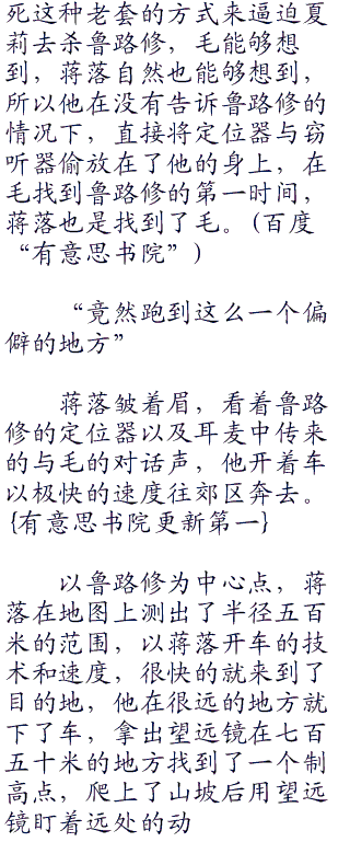 蒋落本身就是神出鬼没,在加上自己geass的特殊性,毛找到他的可能性极低,通过逆向思维,从毛的角度考虑,那么他最先找到的人一定会是蒋落的好基友,好战友鲁路修。