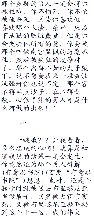 “嘿!!南宫小姐,最好不要开枪哦,如果开枪的话,你内心最不想让人知道的事,就会呈现在你最爱的殿下的桌子前。”