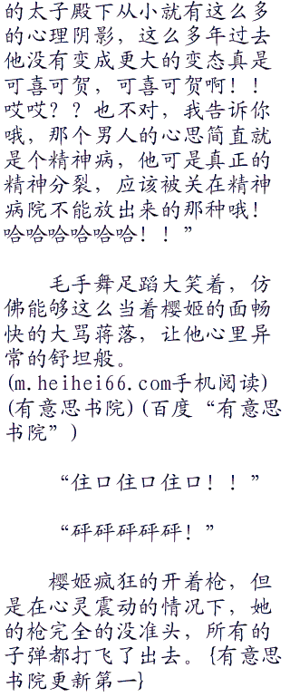 “那么,来完成你最后的作用吧,毛然后,就带着你一生的哀怨,去下地狱吧!”