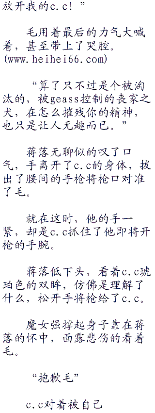 先是c.c拿出手枪对着毛,然后就被毛掏出手枪反杀,樱姬虽然厌恶着这个读心的家伙,但是她也厌恶着c.c。