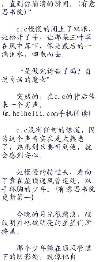 夜深了,c.c独自一人登上了学生会活动室的楼顶。