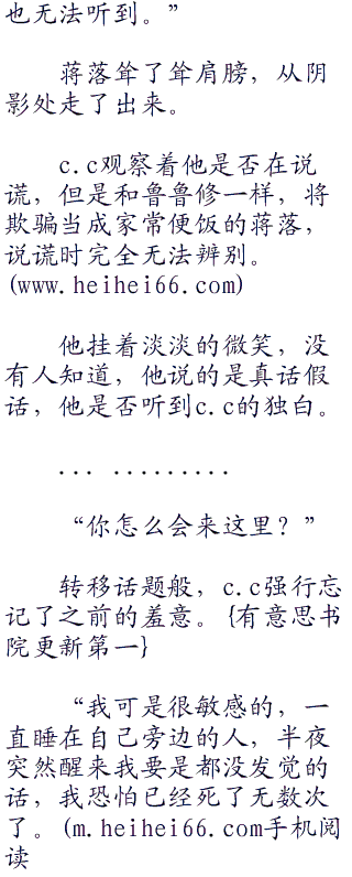 “是啊,我是c.c不是赝品,是货真价实的魔女。我会留在充满了恶魔般执念的你的身边,毫不松懈的纠缠着你,紧拽着你