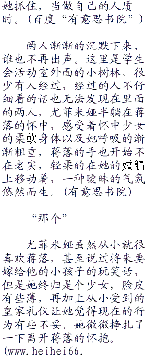 尤菲先是身体一僵,但是很快的就软了下来,她缩了缩身子,将自身的重量倚在蒋落的身体上,心底有着小小的甜蜜与欣喜。
