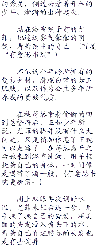 “首先回答你最开始的问题,我和尤菲很久以前就认识了其次,这次尤菲是偷偷的来到阿什福德学院的,希望妮娜你不要把这件事说出去,最后,尤菲的脚受伤了,我现在就要带她离开,所以呢,真是抱歉,恐怕尤菲现在无法和你多聊。”