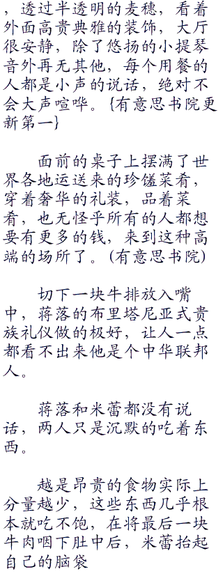 蒋落饶有深意的笑了笑,他探出手臂,让米蕾环住了他的胳膊。
