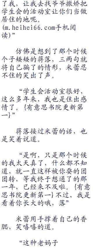 蒋落拿着酒杯的手顿了一下,他皱了一下眉,抬起头看向米蕾,这个总是让人觉得大大咧咧的会长,原来也有这样细腻的一面。