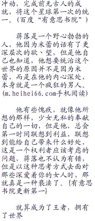 这个世界上女人多的是,漂亮的女人也不少,以蒋落的手段真是要多少有多少,只是发泄身体的欲丶望的话那就随便找一个,但是感情,真的不是能随便玩弄的。