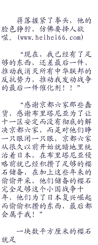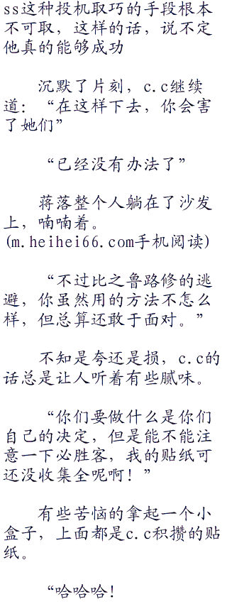 蒋落有些哭笑不得,看着正陷入妄想中的c.c,虽然活了这么多年,有的时候真的很幼稚啊。