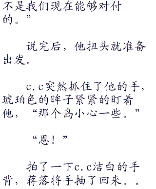 但是这番话却让朱雀头上出现了冷汗,zero口中伟大的父亲和自己见到的那个阴狠的父亲形成了鲜明的对比,让亲手杀死自己父亲的枢木朱雀害怕了,他总觉得在这样说下去,zero会暴露出什么恐怖的秘密。