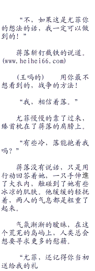 外套上有着淡淡的味道,很香,并不难闻,尤菲米娅知道那就是蒋落的味道,她在衣服的领口间深深的吸了几口。