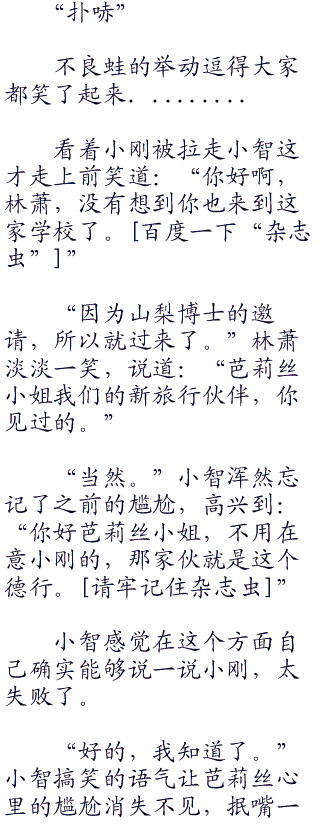 惊魂未定的小智和小刚没有想到身后会有人忽然说话,差点没将两人吓死,顿时鬼吼鬼叫起来。