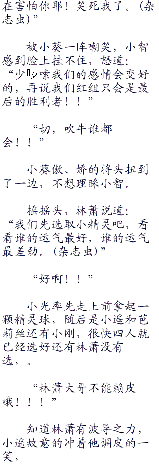 小智和雷丘的相处让小葵毫不犹豫的大笑起来,开始打击小智,“哈哈,雷丘