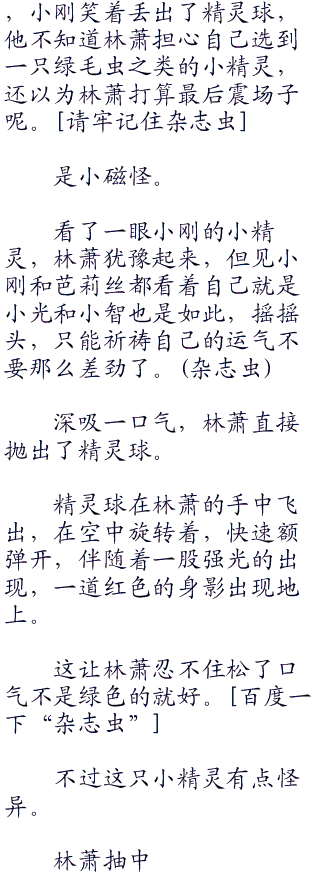 林萧忽然感到有点紧张,看着手中的精灵球,一时间不知道是不是该丢出精灵球,如果丢出精灵球从里面出来一只绿毛虫怎么办?!林萧可不想尝试那种被人虐的欲仙欲死的感觉。